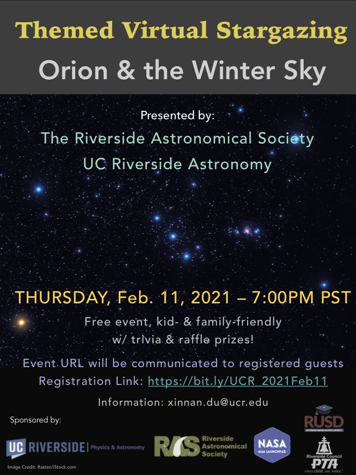* Tickets: Free but RSVP is required through EventBrite<https://www.eventbrite.com/e/virtual-stargazing-orion-and-the-winter-sky-registration-137547589543> (Note: school-district email addresses and other work emails with firewalls may block the EventBrite messages)