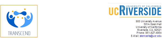 We are very pleased to announce that TRANSCEND - our Stem Cell Training Grant - has been approved for funding by the California Institute for Regenerative Medicine (CIRM) for the period of 12/1/2021 to 11/30/2026. The first cohort of trainees are being recruited this fall quarter to begin 1/1/2022, with additional recruitments possible later in 2022.