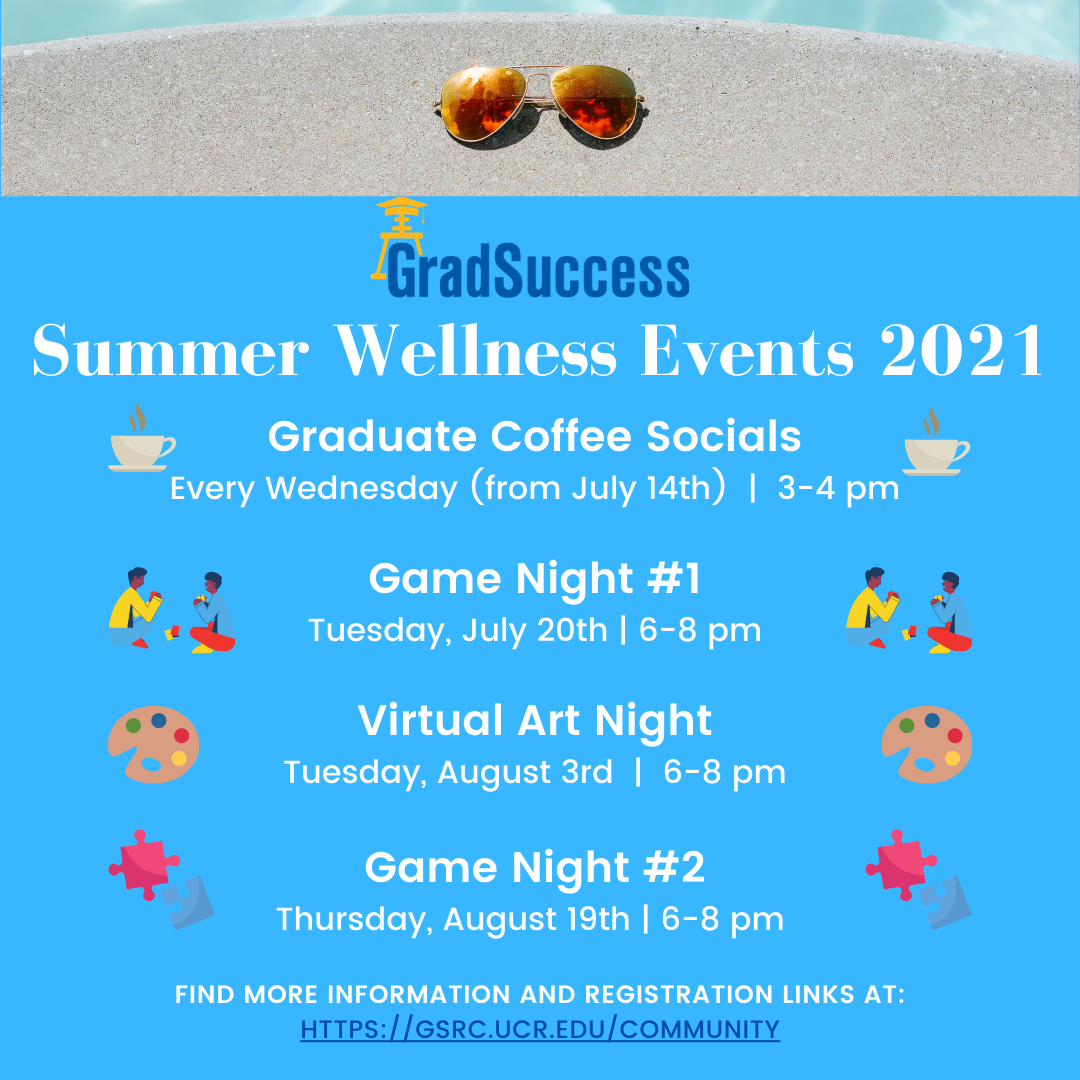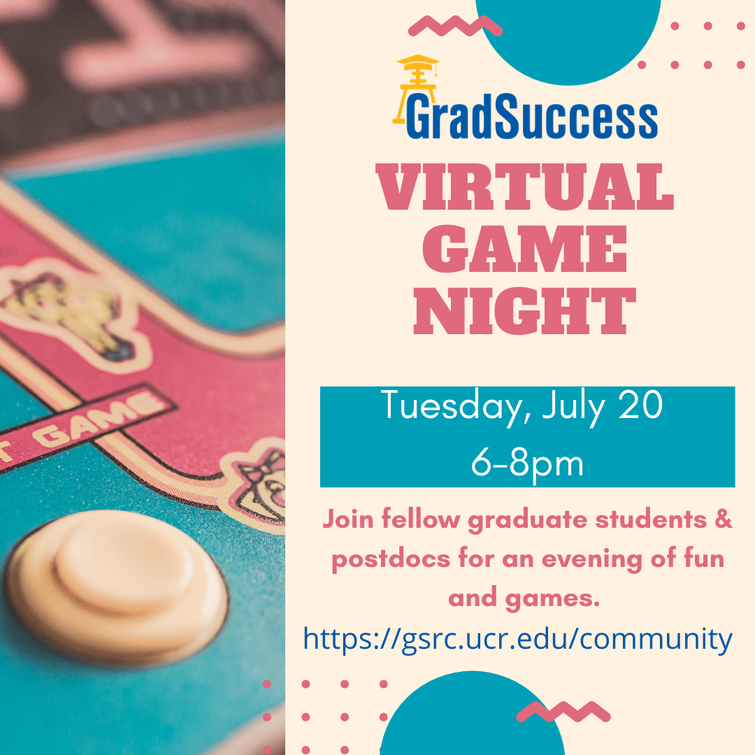 * Our first online game night of the summer will be held on July 20th at 6pm: https://gsrc.ucr.edu/community.