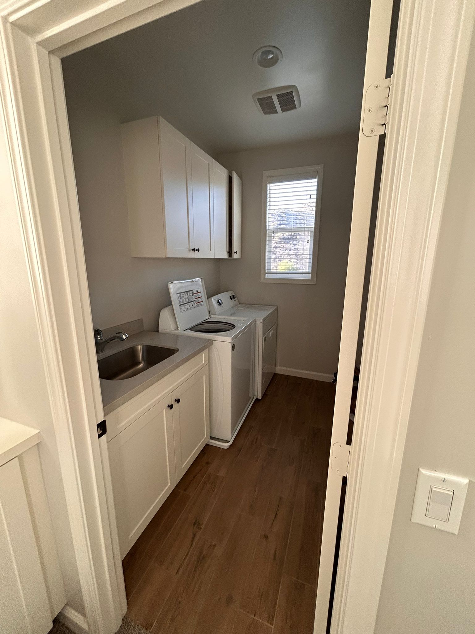 washer and dryer, and patio with space for outdoor dining. The house