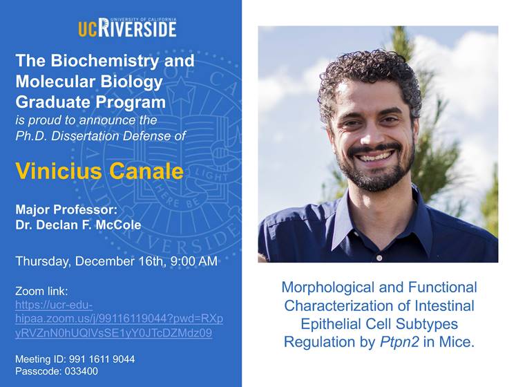 [Biomed_postdocs] [Bcmbstudent] Vinicius Canale Ph.D. Dissertation Defense - Thursday, 12/16/2021 9:00 A.M.