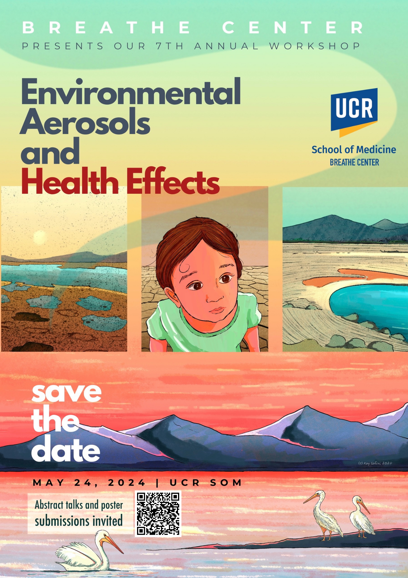Join us for the 7th annual Breathe workshop at UC Riverside on Friday, May 24, 2024. This year's workshop is themed "Environmental Aerosols and Health Effects". Keynote presentations will be given by Molly Blakowski<https://urldefense.com/v3/__https:/qcnr.usu.edu/directory/wats/graduate-students/blakowski-molly__;!!OLyWHuc!TT2VAPs5UxzPg17cCWHGjXJEe39gorrgFTSvMyCsgI3RrGaVy_Zxb7Qw9tdf9nHv_MhCjnCqcZpxwV4nzgWAO_THadY$>, PhD student, Utah State University and Kimberly Prather<https://urldefense.com/v3/__https:/kprather.scrippsprofiles.ucsd.edu/__;!!OLyWHuc!TT2VAPs5UxzPg17cCWHGjXJEe39gorrgFTSvMyCsgI3RrGaVy_Zxb7Qw9tdf9nHv_MhCjnCqcZpxwV4nzgWARjth1-4$>, Ph.D., Director, NSF Center for Aerosol Impacts on Chemistry of the Environment.