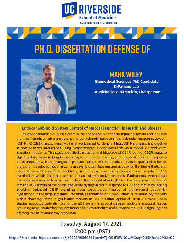 We are pleased to announce the Dissertation Defense of Biomedical Sciences Ph.D. Candidate, Mark Wiley.