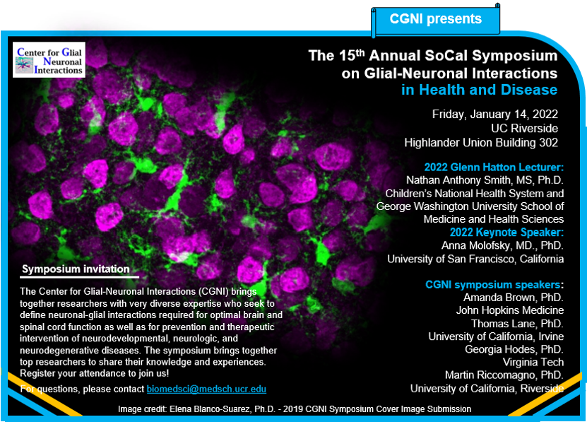 Mark your calendars and register your attendance to join us for the "15th Annual SoCal Symposium on Glial-Neuronal Interactions in Health and Disease!"
