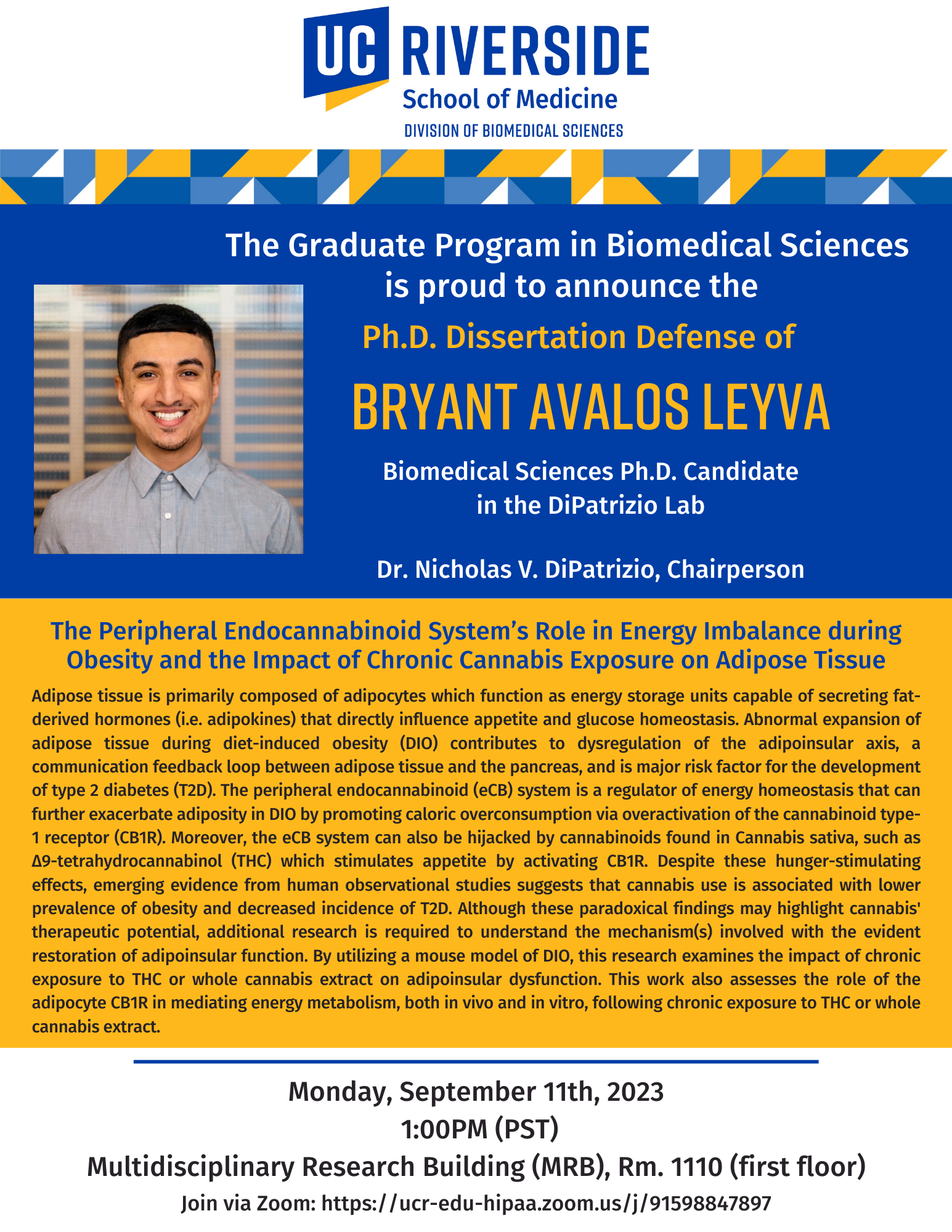 [Biomed_students_masters] Ph.D. Dissertation Defense: Bryant Avalos Leyva - Monday, September 11