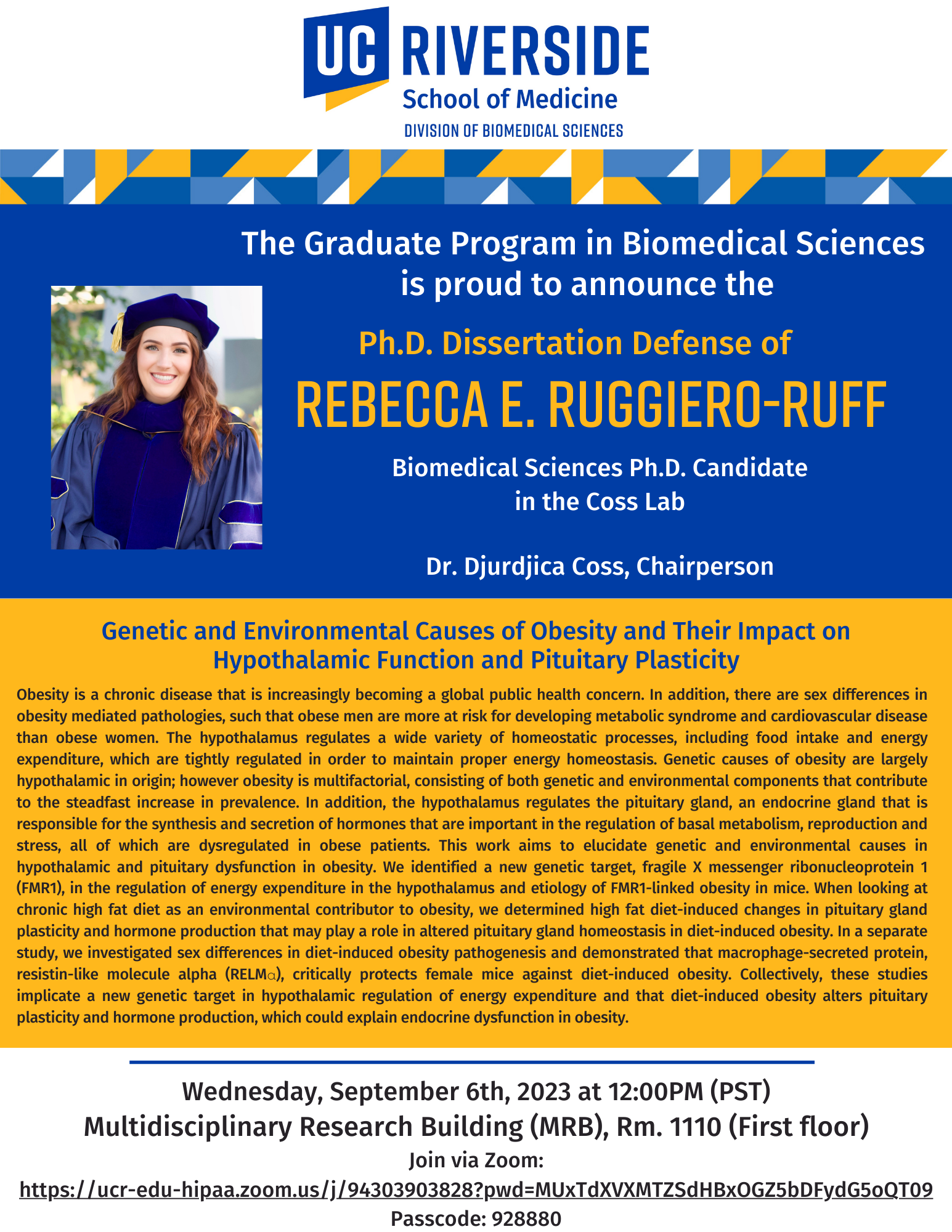 [Biomed_students_phd] Ph.D. Dissertation Defense: Rebecca Ruggiero-Ruff - Wednesday, September 6