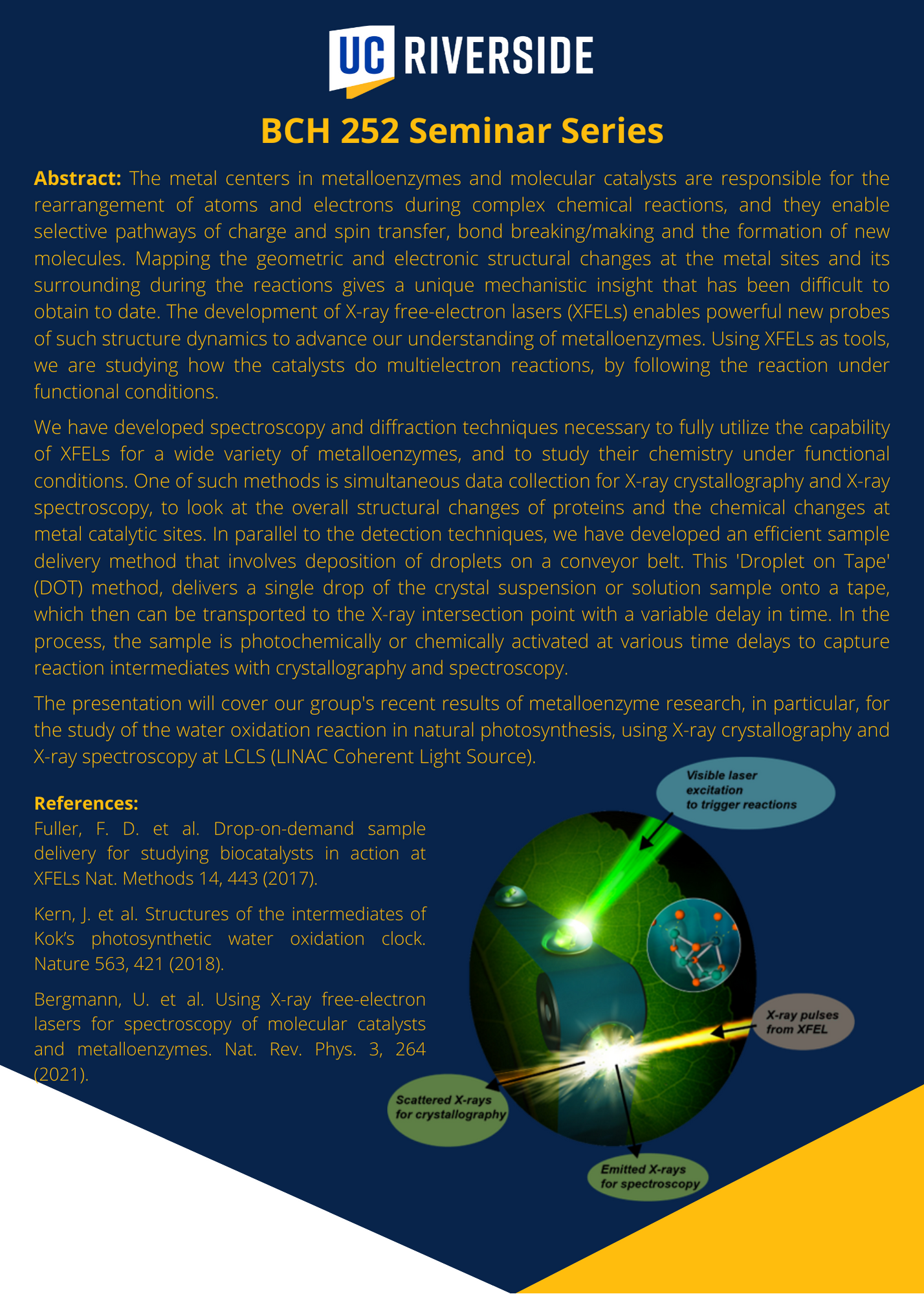 [Bphystudent] BCH 252 Seminar Series Winter 2023 - Dr. Junko Yano, Lawrence Berkeley National Laboratory - 1/17/2023 12:00pm