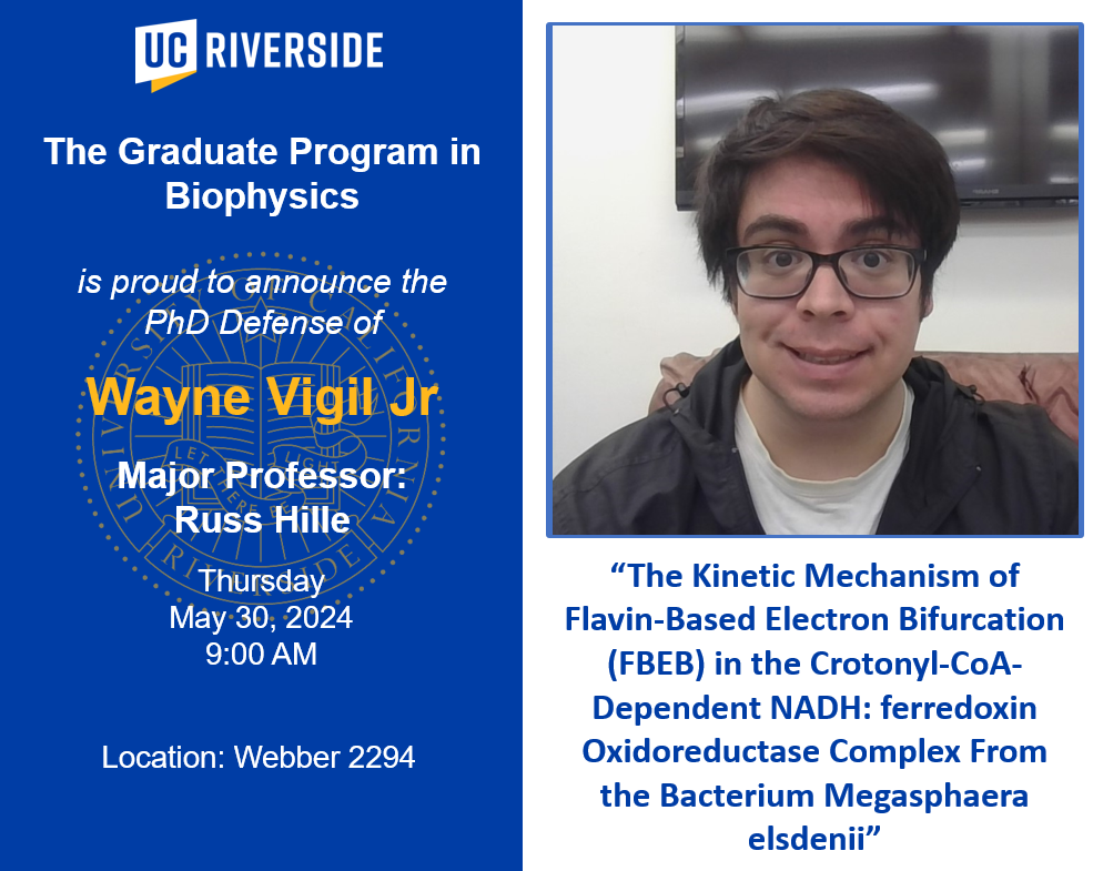[Bphystudent] Final Defense Wayne Vigil Jr: Thursday, May 30th at 9:00 am, Location Webber 2294.
