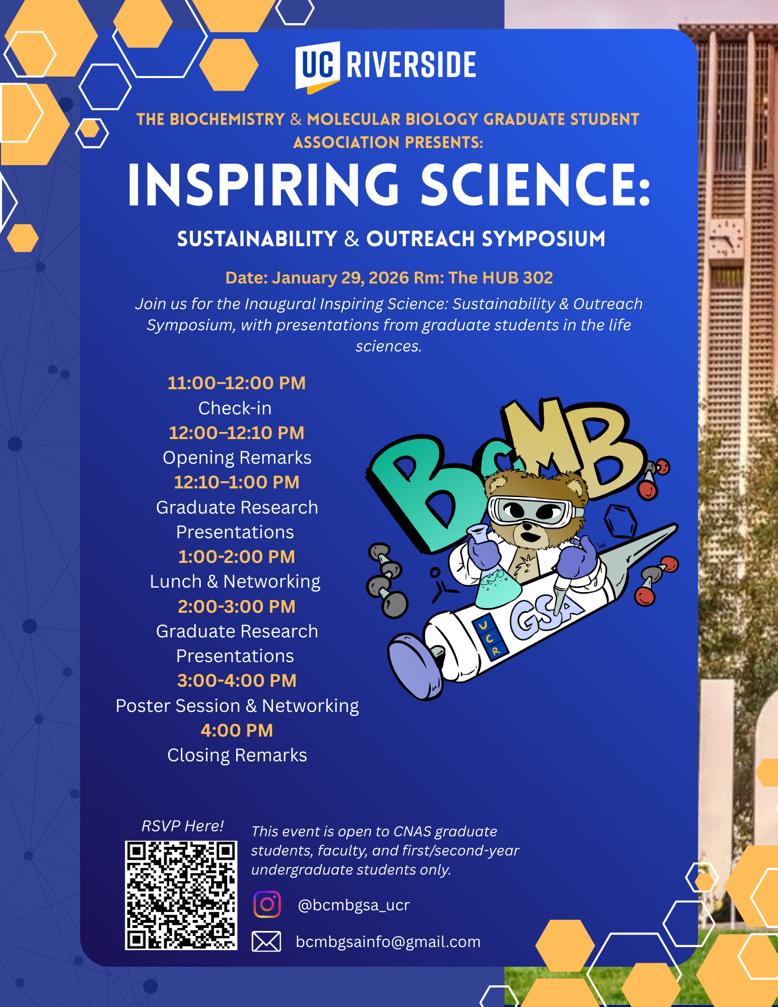 The Inspire Science Symposium is hosted by BcMBGSA and is designed to: