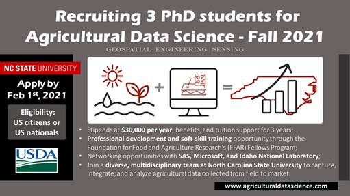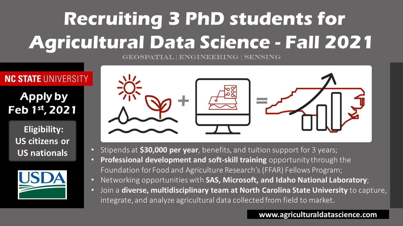 Subject: FW: Recruiting for three PhD fellowships in agricultural data