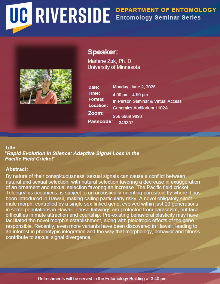 *Dr. *Marlene Zuk*Department of Ecology, Evolution and Behavior** University
