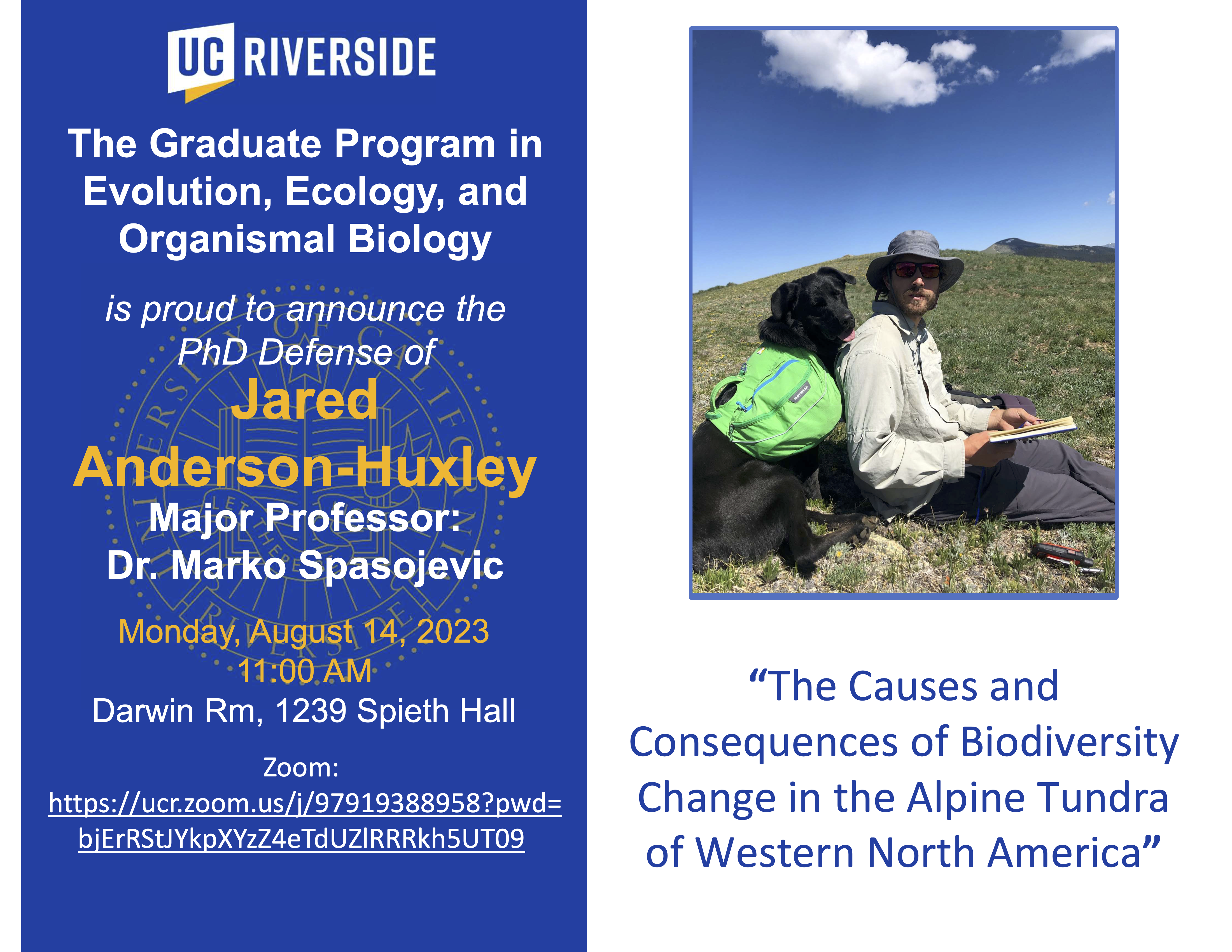 [Ccbseeds] [Ccb_gsr_listserv] Fwd: [Eeobfaculty] PhD Dissertation Defense Announcement: Jared Anderson-Huxley - Monday, August, 14, 2023 at 11:00 AM