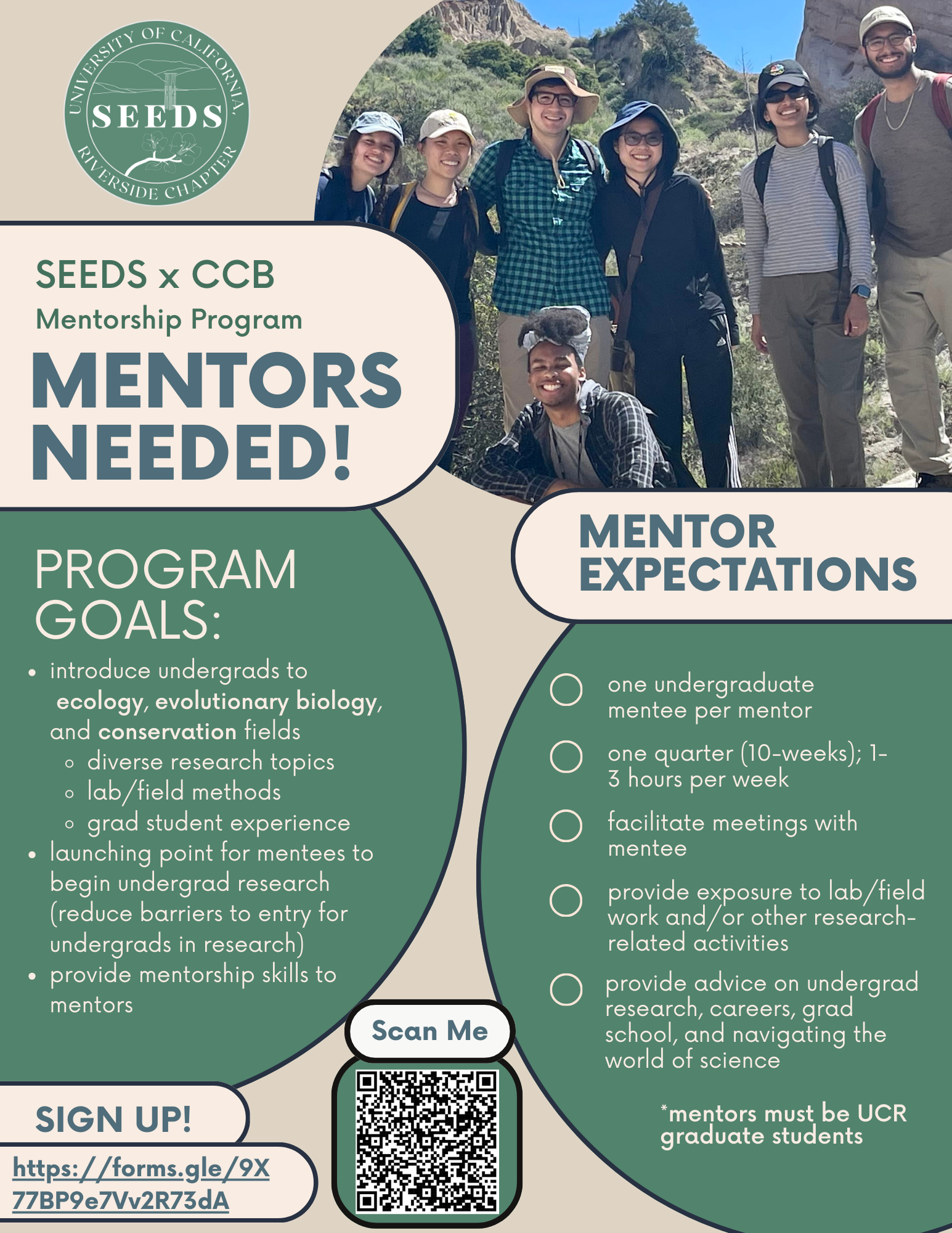 We are now recruiting mentors for the Winter 2024 cohort of the SEEDS-CCB