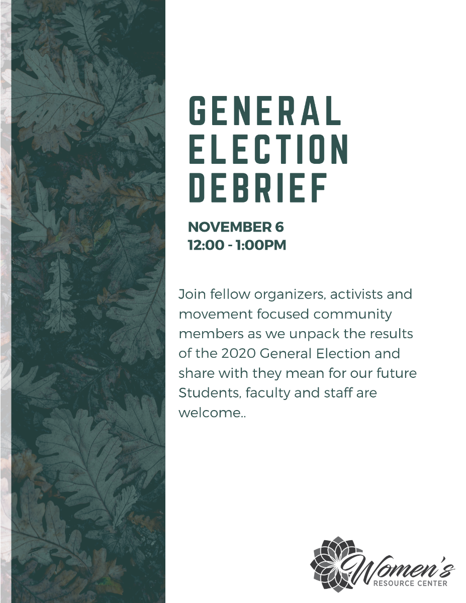 * Join fellow organizers, activists, and movement focused community members as we unpack the results of the 2020 General Election and share what they mean for our future. Students, faculty, and staff are welcome.