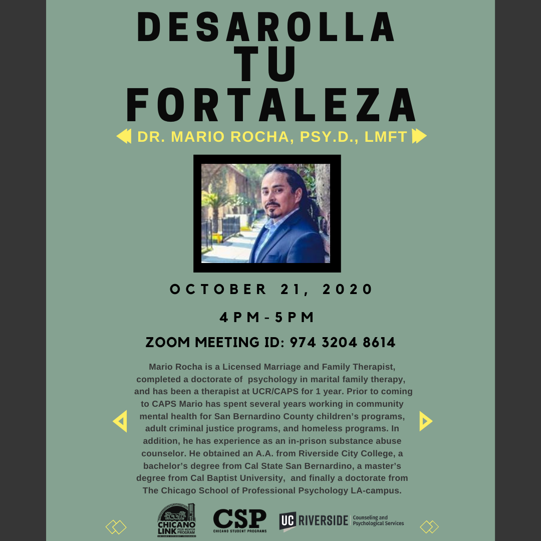 Wednesday, Oct. 21st—Desarolla Tu Fortaleza with Dr. Mario Rocha, Psy.D., LMFT