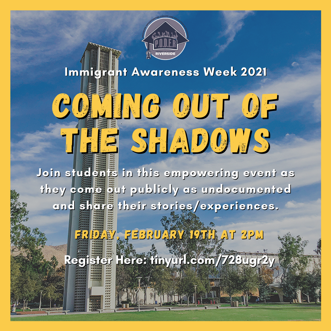 Listen to students in this empowering event as they come out publicly as undocumented and share their experiences/stories. Register here<http://tinyurl.com/728ugr2y>.