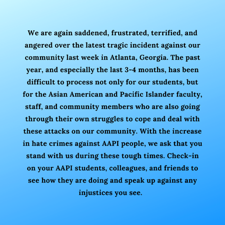 Here is the statement APSP put out last week in regards to the ongoing anti-Asian racism that is affecting our community.