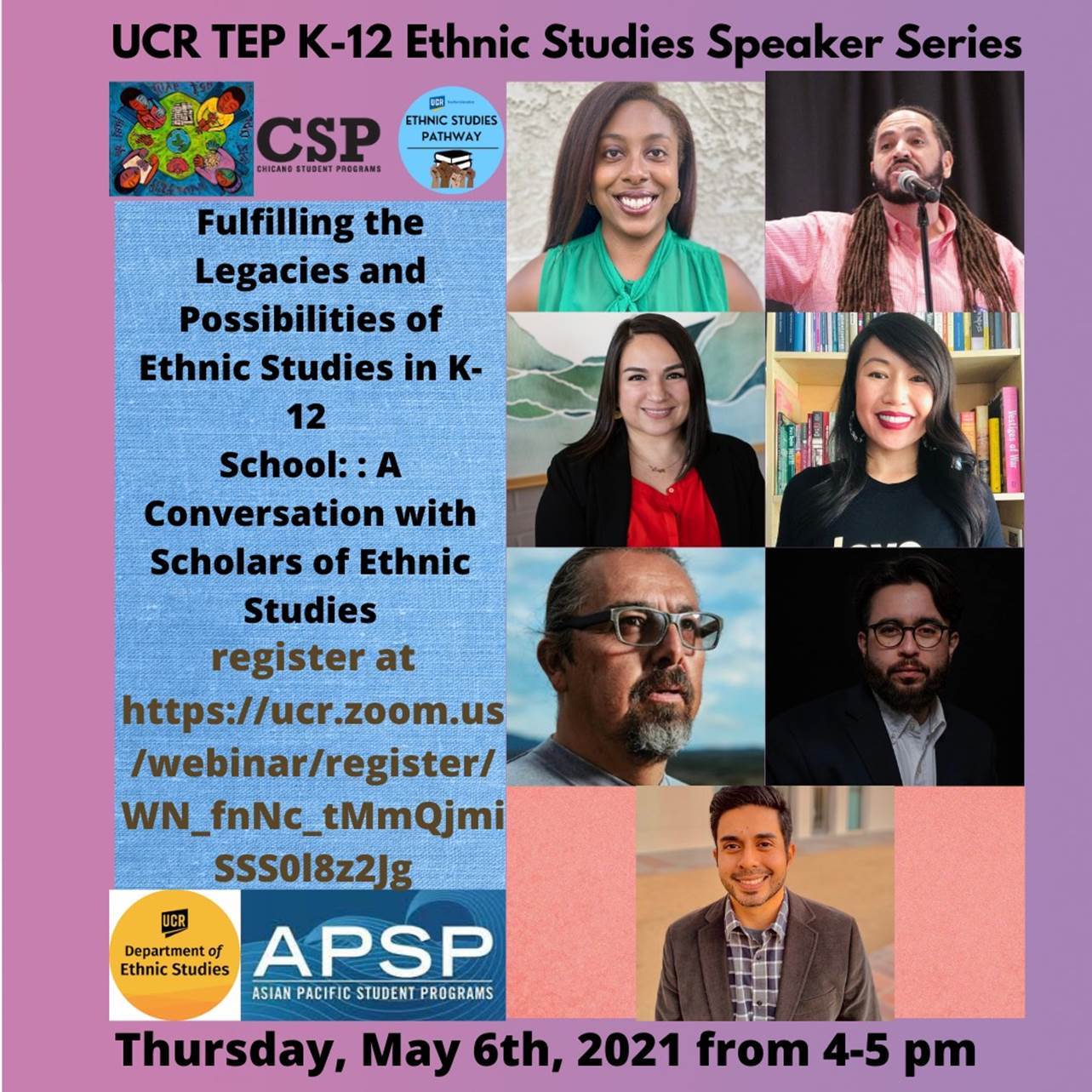 May 6th: Fulfilling the Legacies and Possibilities of Ethnic Studies in K-12 Schools: A Conversation with Scholars of Ethnic Studies.