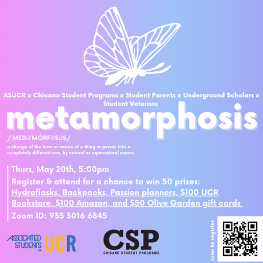 Join ASUCR, Chicano Student Programs, Student Parents, Underground Scholars, and Student Veterans this Thursday for a panel centering on nontraditional student voices and narratives! Register & attend for a chance to win 50 prizes!