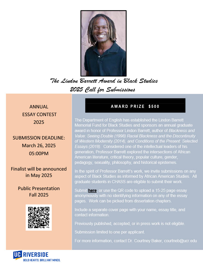 [Chass-gradstudents] Fwd: The Lindon Barrett Award - Call for Submissions