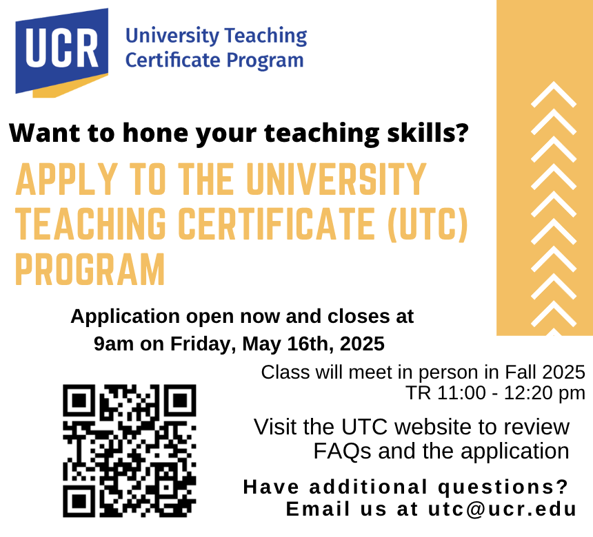 are due on *Friday, May 16th! *The University Teaching Certificate (UTC)