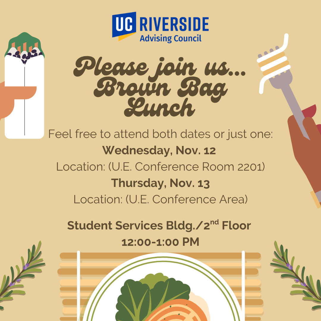 Subject: UCR Advising Council - Brown Bag Lunch Gathering (Wednesday, Nov.
