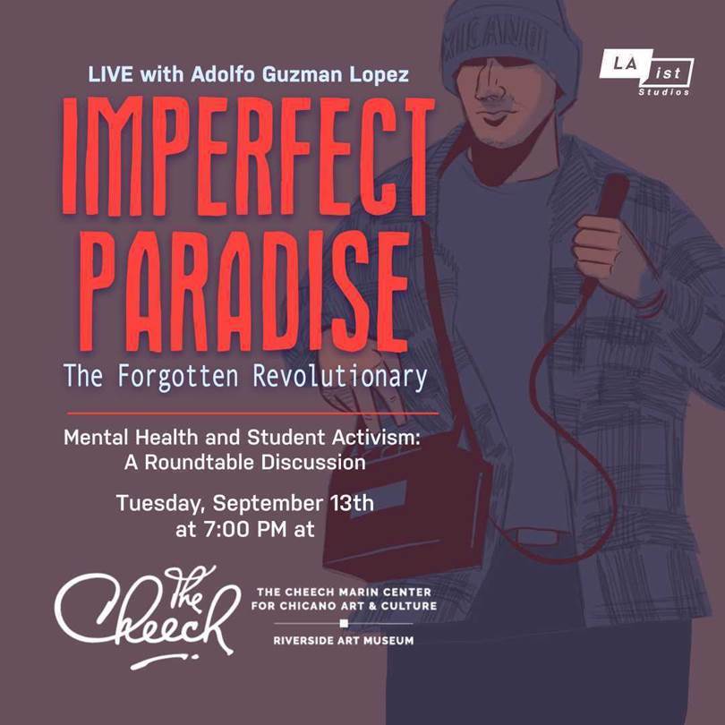 * Roundtable discussion on mental health and student activism with KPCC’s Adolfo Guzman-Lopez and special guests. In person at the Cheech Museum in Riverside. Sept 13 at 7pm