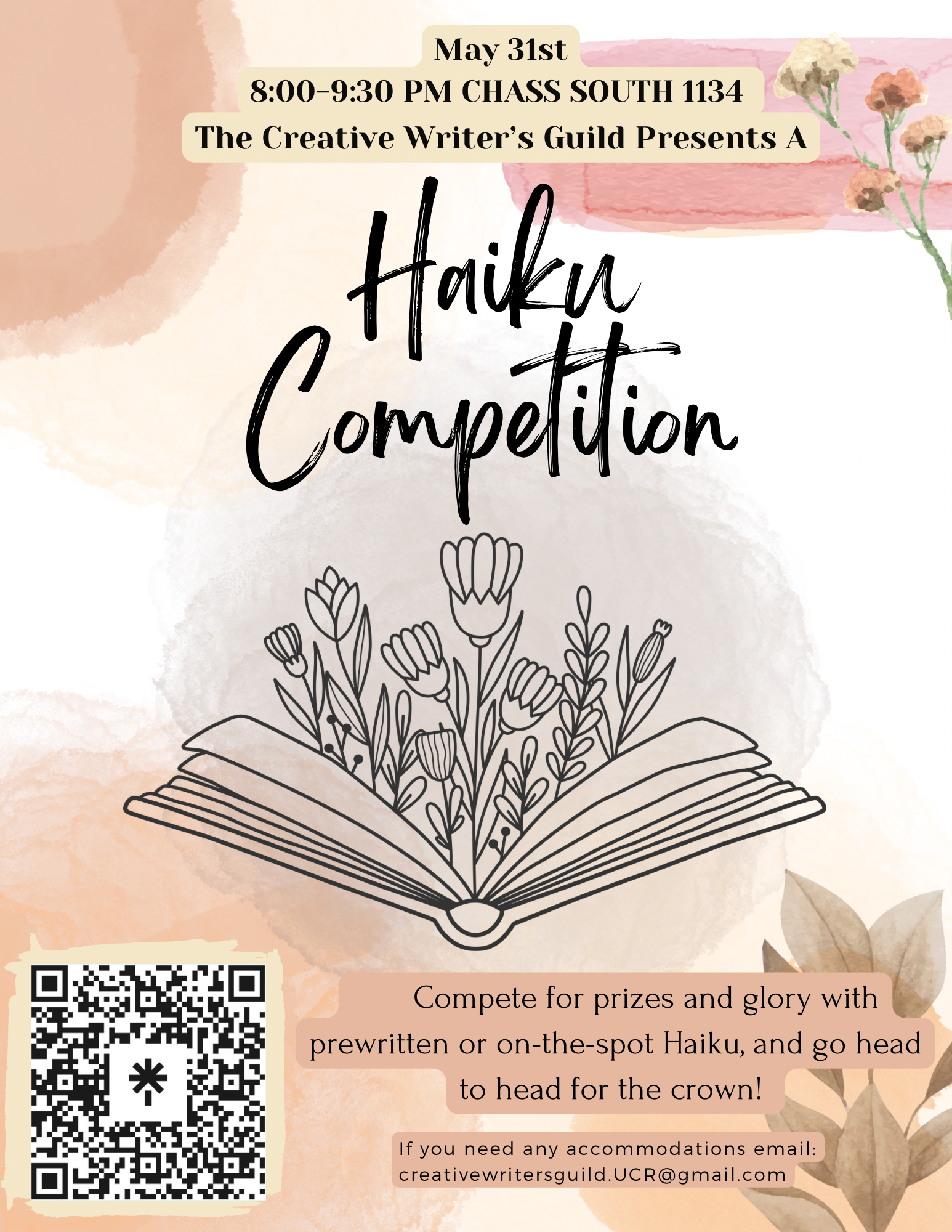 Subject: The Creative Writer’s Guild at UCR Haiku Competition Announcement