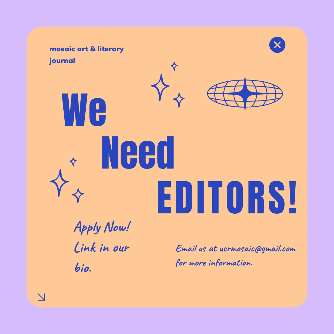 [Crwt-undergrad-info] Mosaic Art & Literary Journal Needs Editors!
