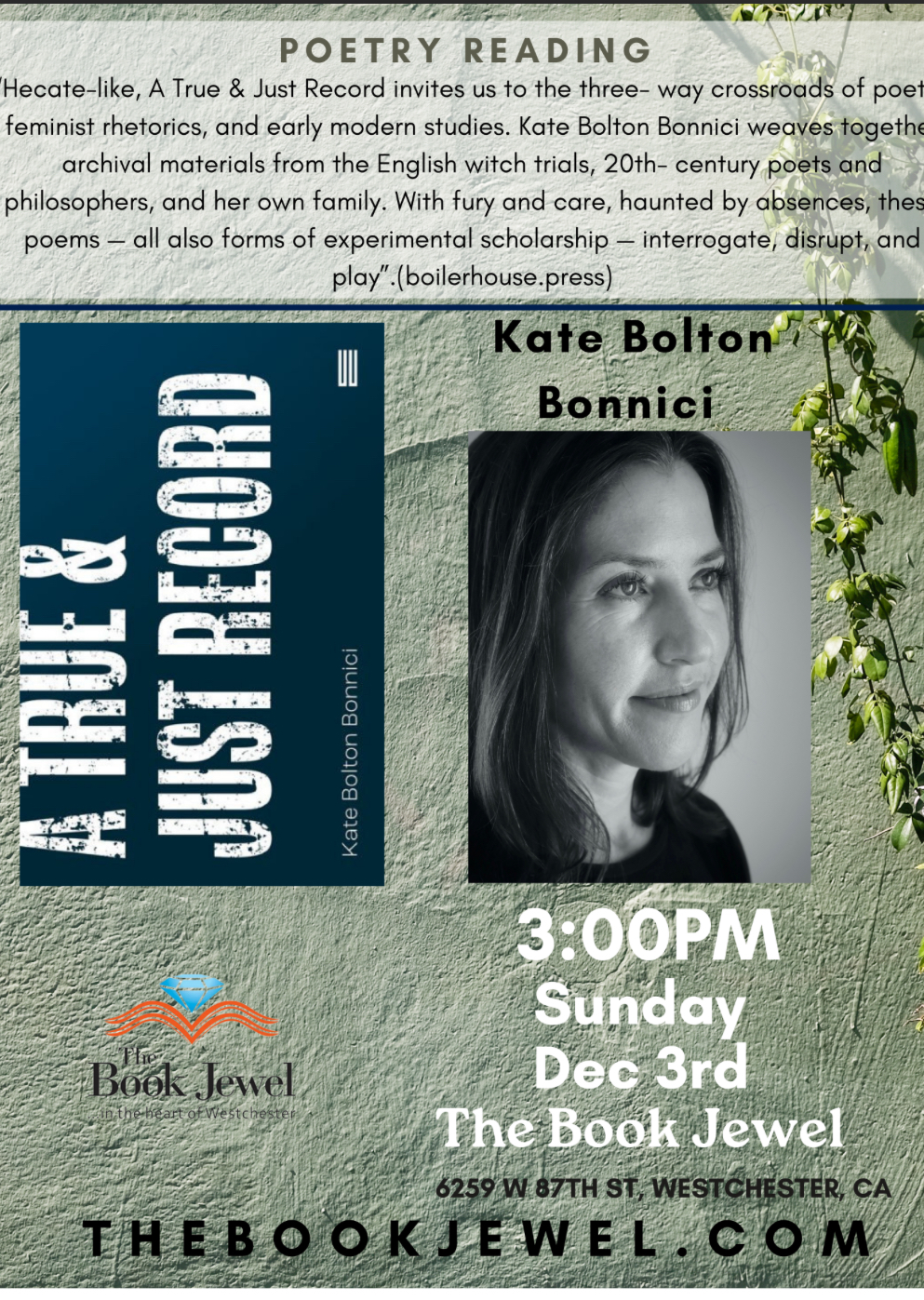 [Crwt-undergrad-info] Kate Bonnici has a new release, A True & Just Record!