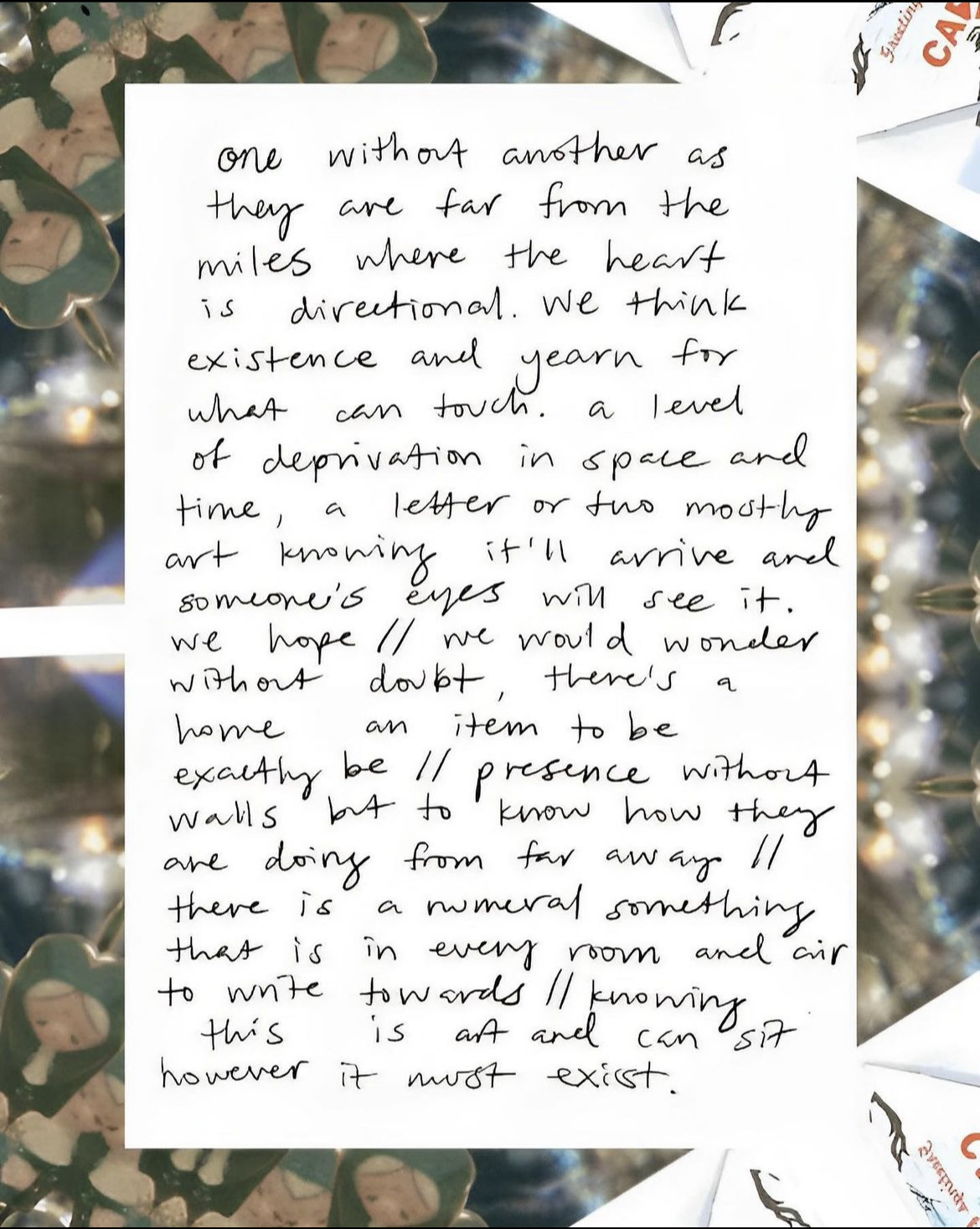 written (poetry, short story, essay, nonfiction/fiction, hermit crab form)