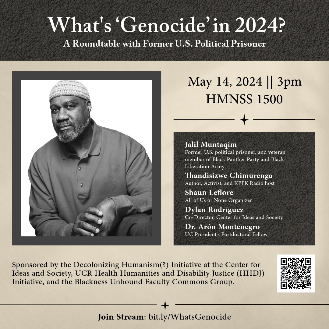 [Crwt-undergrad-info] Fwd: May 14: "What's 'Genocide?'" with Jalil Muntaqim