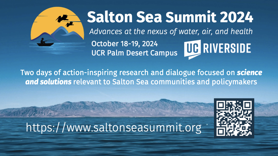 Registration is now open for the 2024 Salton Sea Summit to be held this October 18/19 at UCR Palm Desert Campus and two community locations.