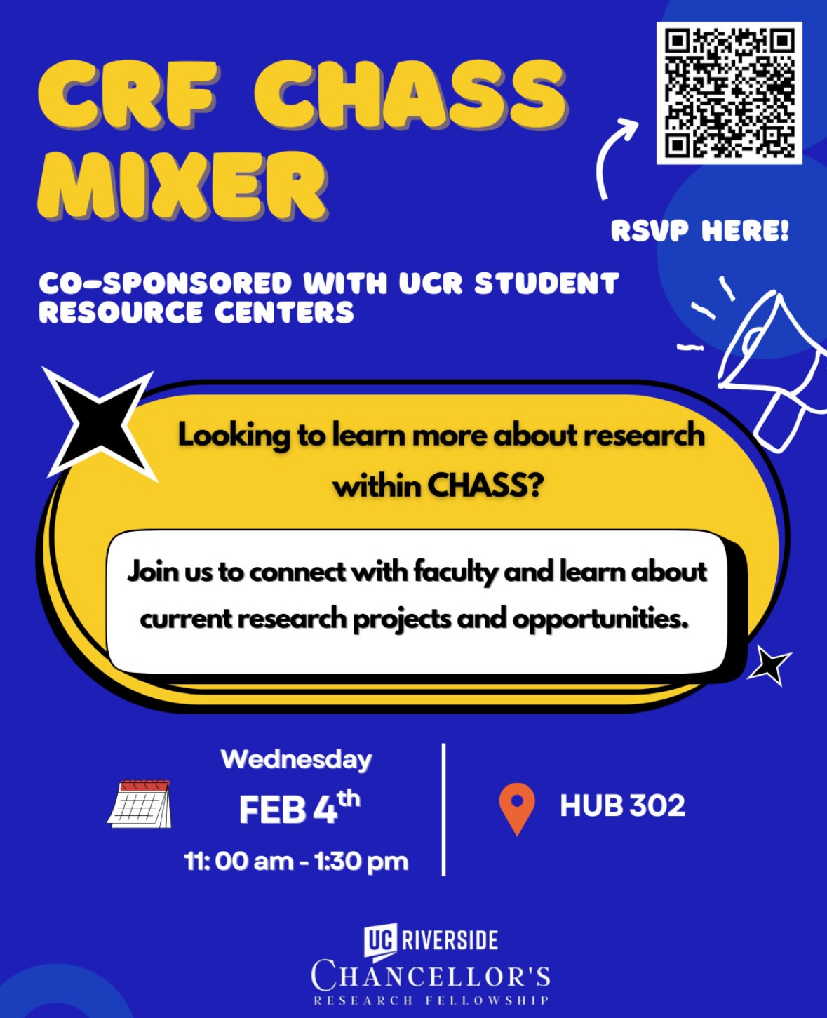 [English-undergrad] Fwd: Invitation to Participate in the CRF CHASS Winter Research & Creative Activities Mixer - Feb. 4