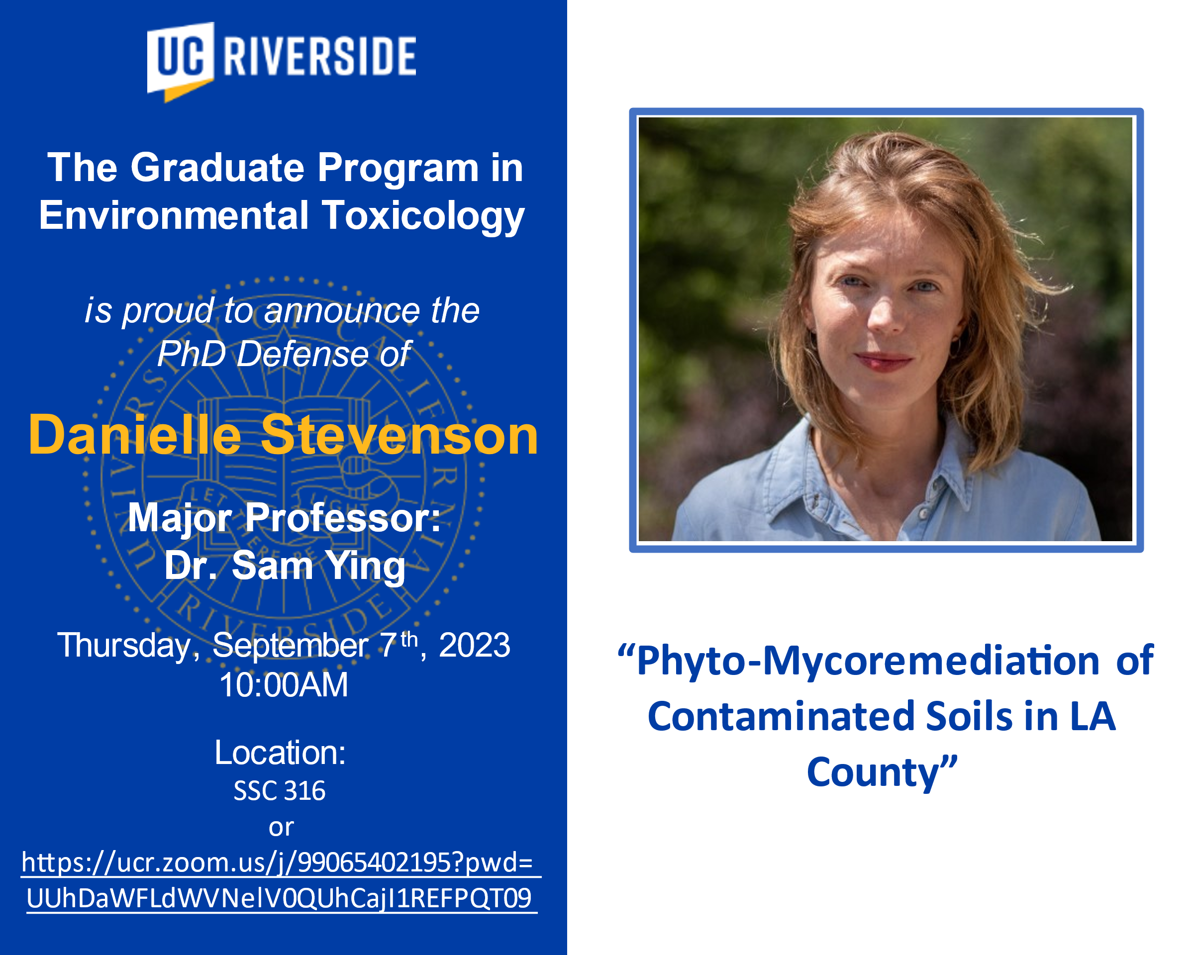 The Graduate Program in Environmental Toxicology is proud to announce the PhD Defense of