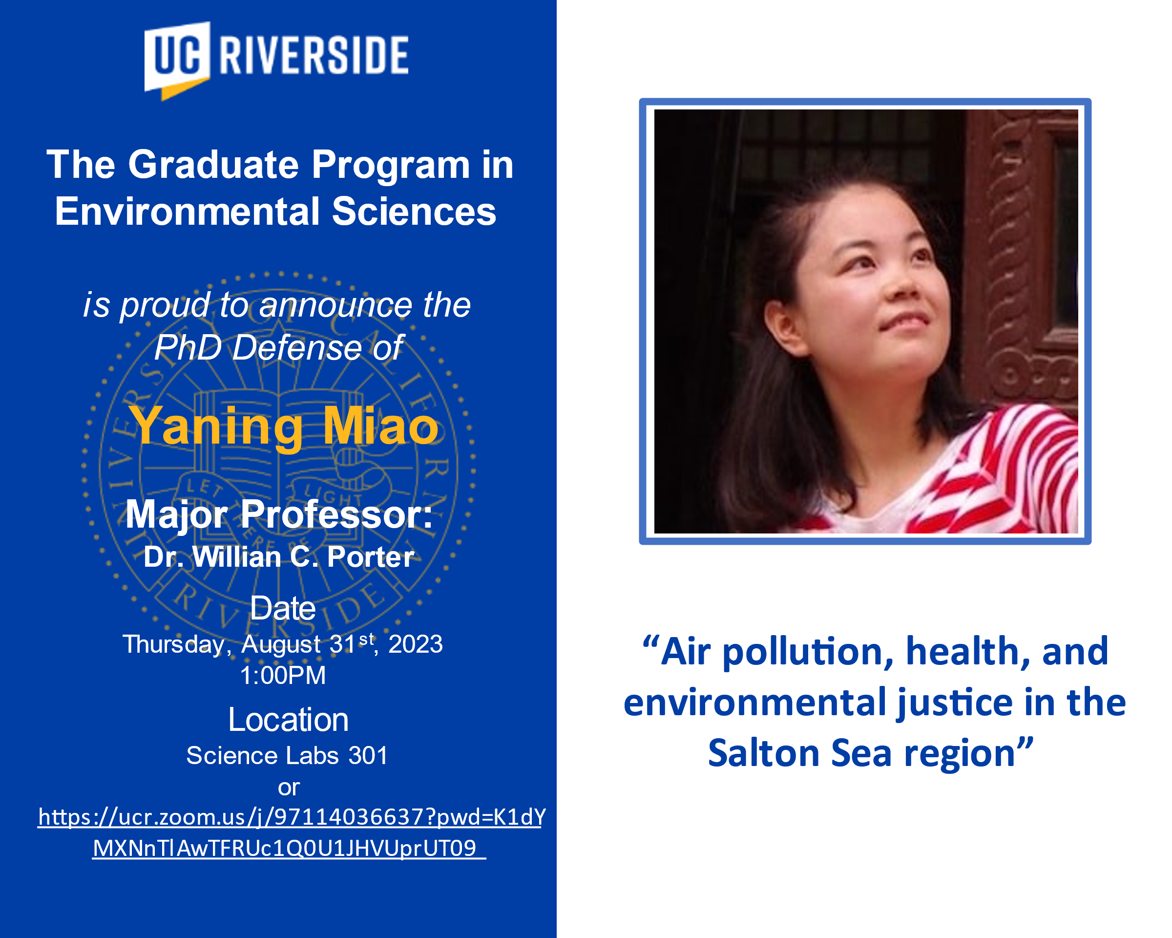 The Graduate Program in Environmental Sciences is proud to announce the PHD Dissertation Defense of