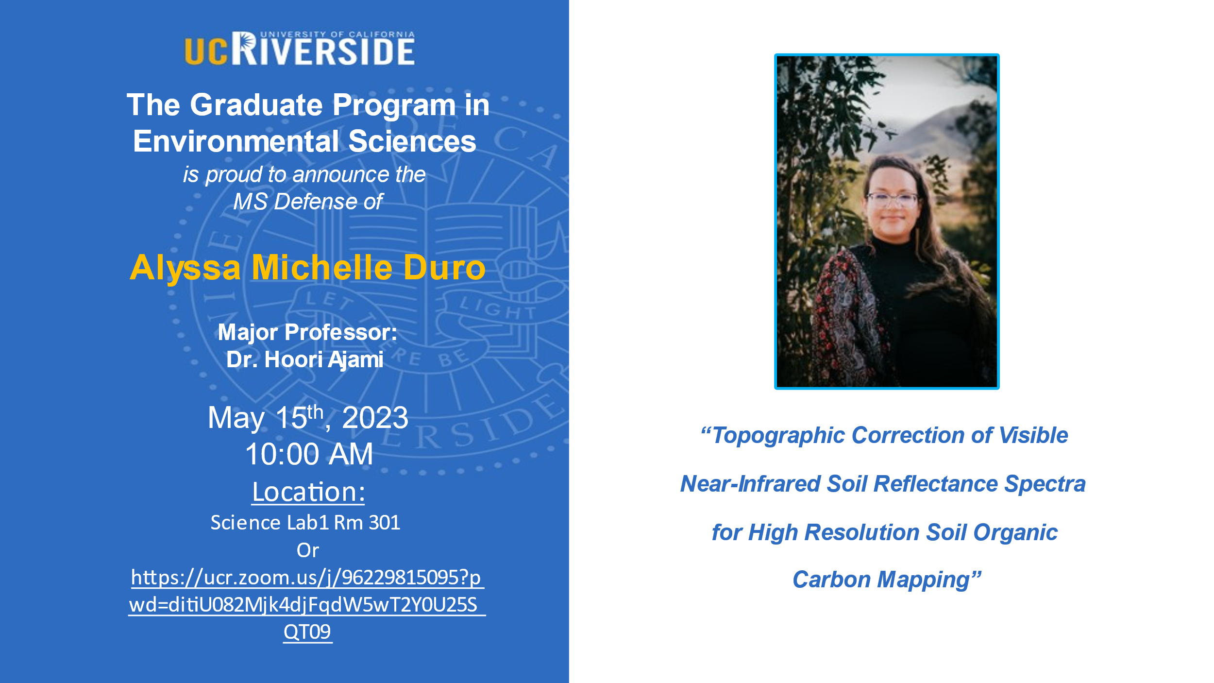 The Graduate Program in Environmental Sciences is proud to announce the MS Defense of