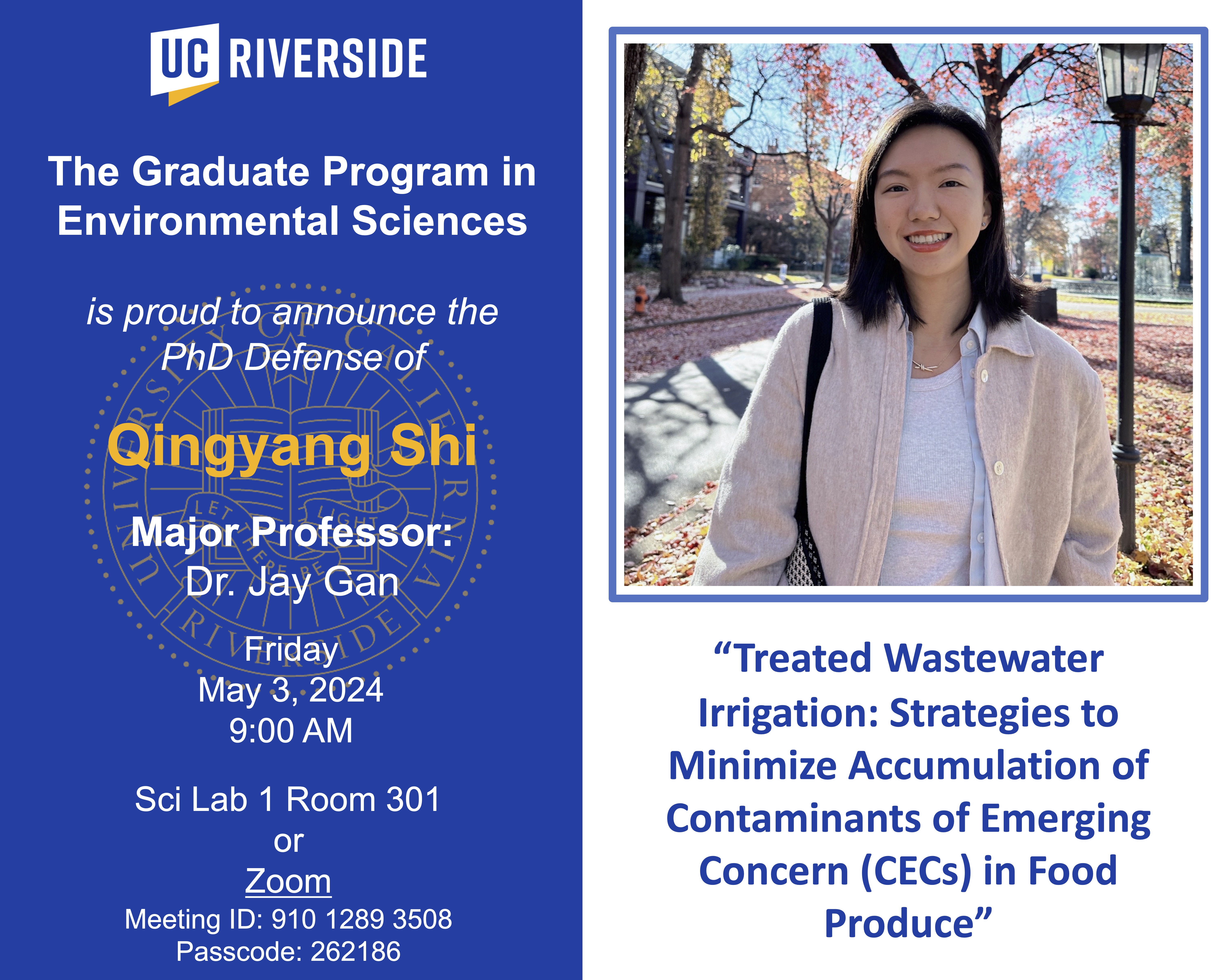 The Graduate Program in Environmental Sciences is proud to announce the PhD Dissertation Defense of Qingyang Shi.