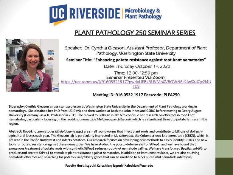 [Entm-beu] Plant Pathology 250 Seminar Series - Dr. Cynthia Gleason 10/1/2020 12:00pm
