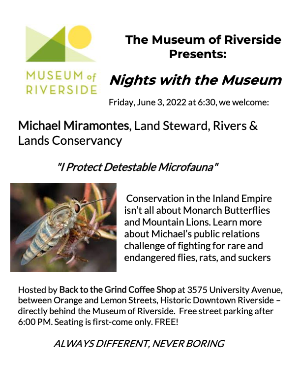 [Entm-beu] Nights with the Museum of Riverside Presents Michael Miramontes, Land Steward, Rivers & Lands Conservancy