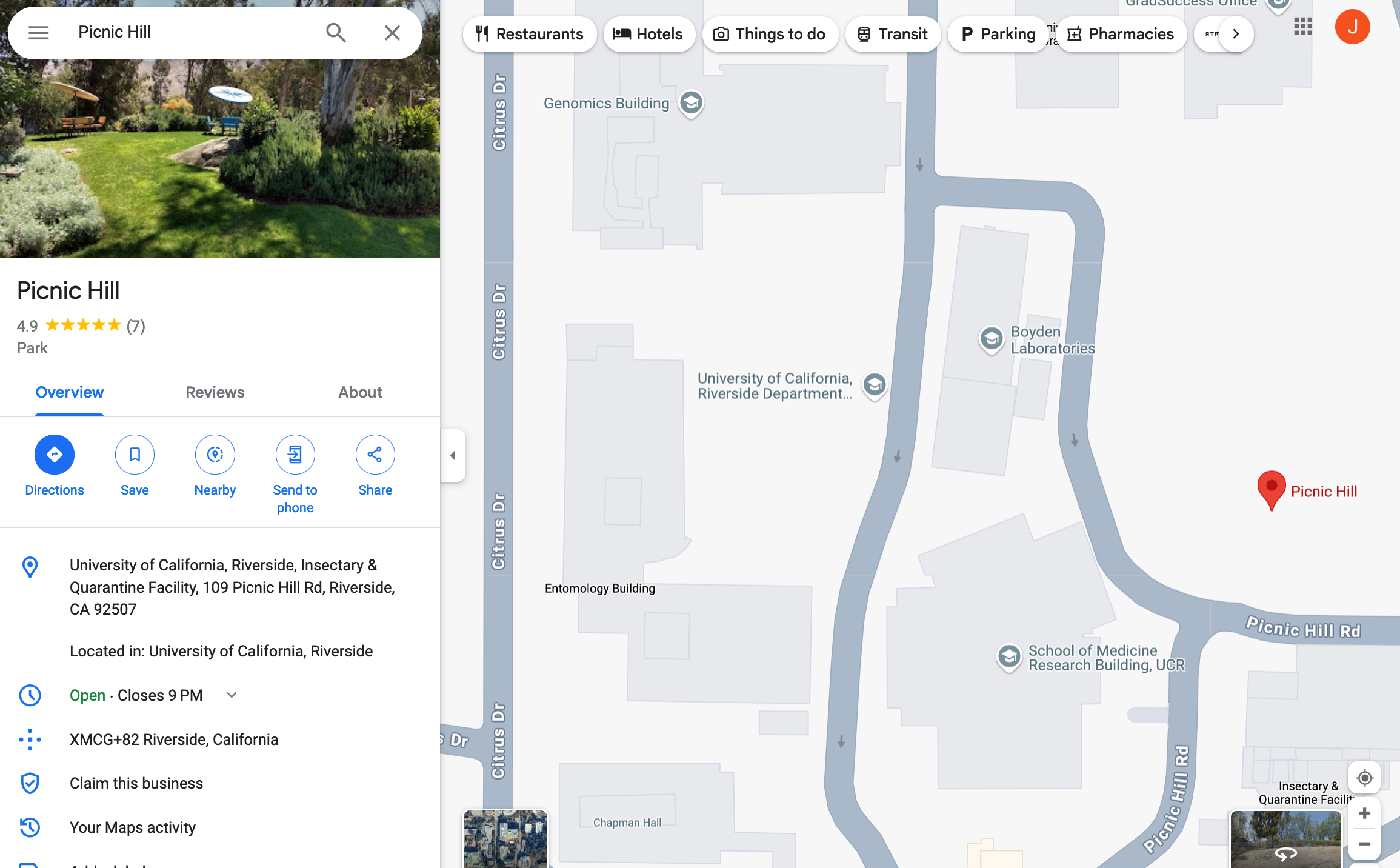 Also included is a map of picnic hill. I encourage the undergrads to make this ’their spot’ - a good place to study or just hang out. Not everyone knows about it.