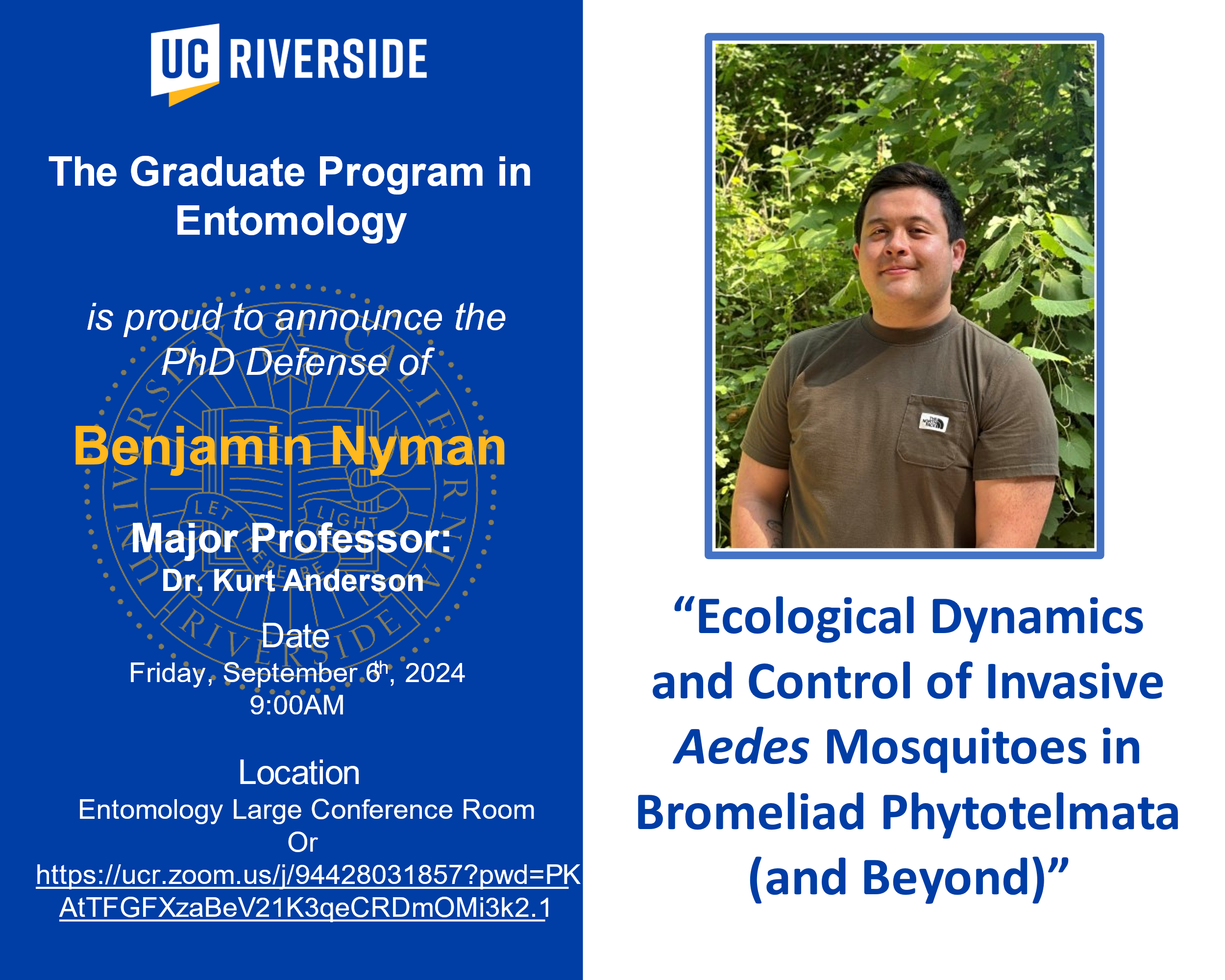 [Entm-beu] Benjamin Nyman, PHD Dissertation Defense 9/6/2024 at 9:00AM