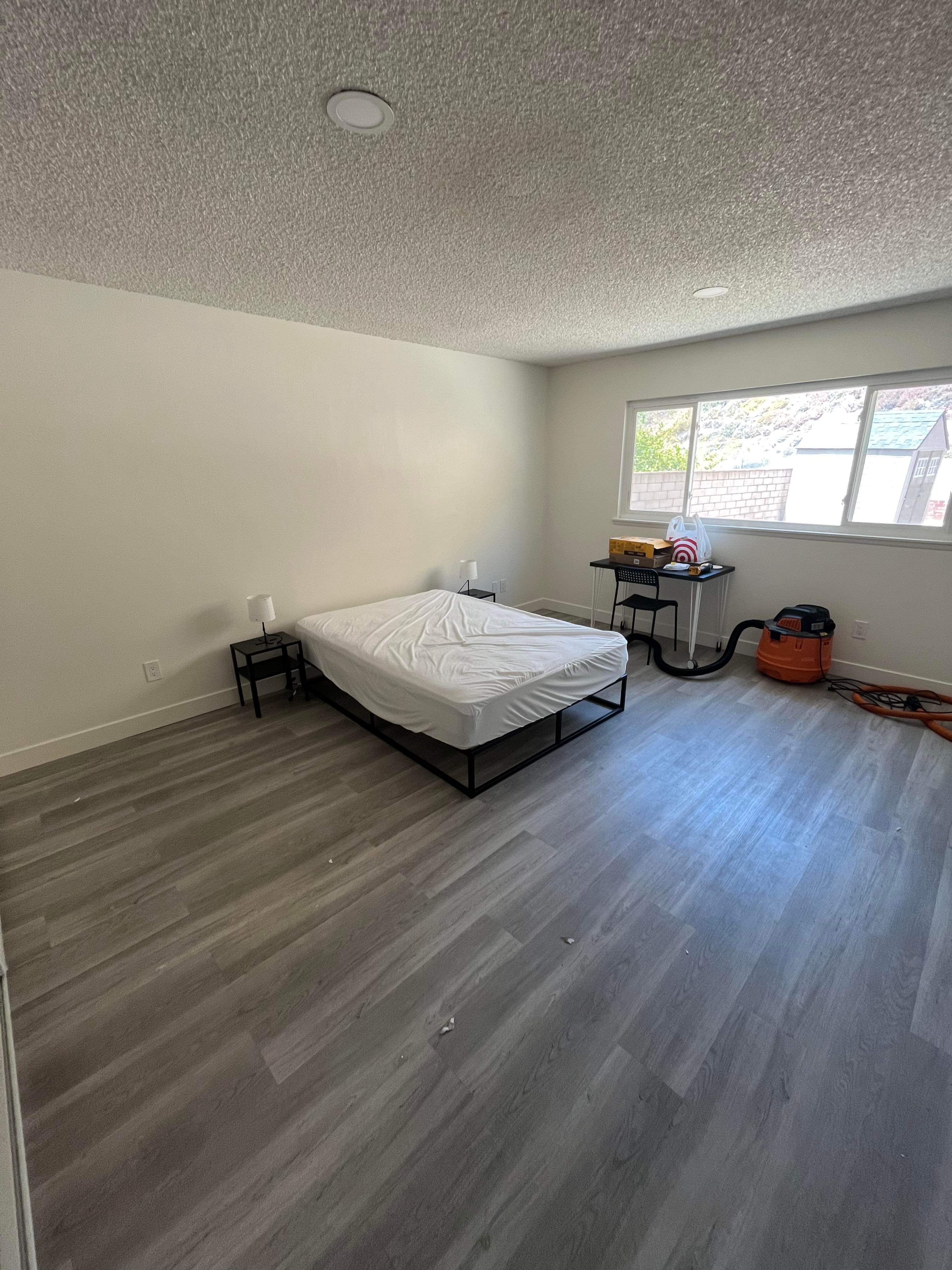 It's a private furnished bedroom and bathroom in a house on Spruce Street.