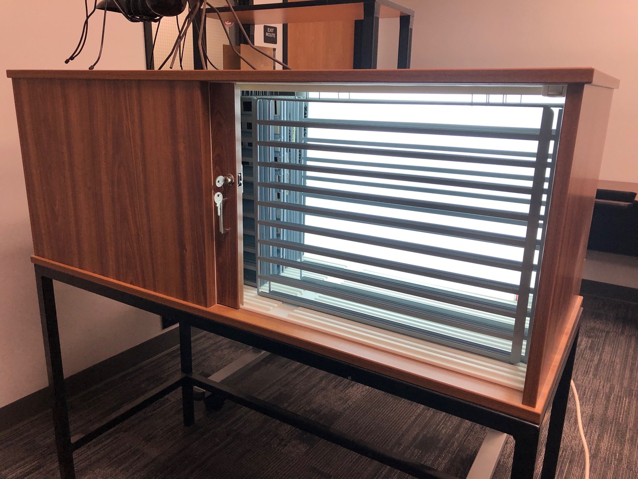 This slide cabinet is essentially brand new (bought in 1999 or 2000) and free if you can use it. It is on a metal frame pedestal and sits approximately 60 inches tall. The cabinet itself is in the neighborhood of 48 x 18 x 18. For old-school 35mm slides. One of the pics shows it has a very nice backlight so you can look at the slides mounted on the sliding racks.