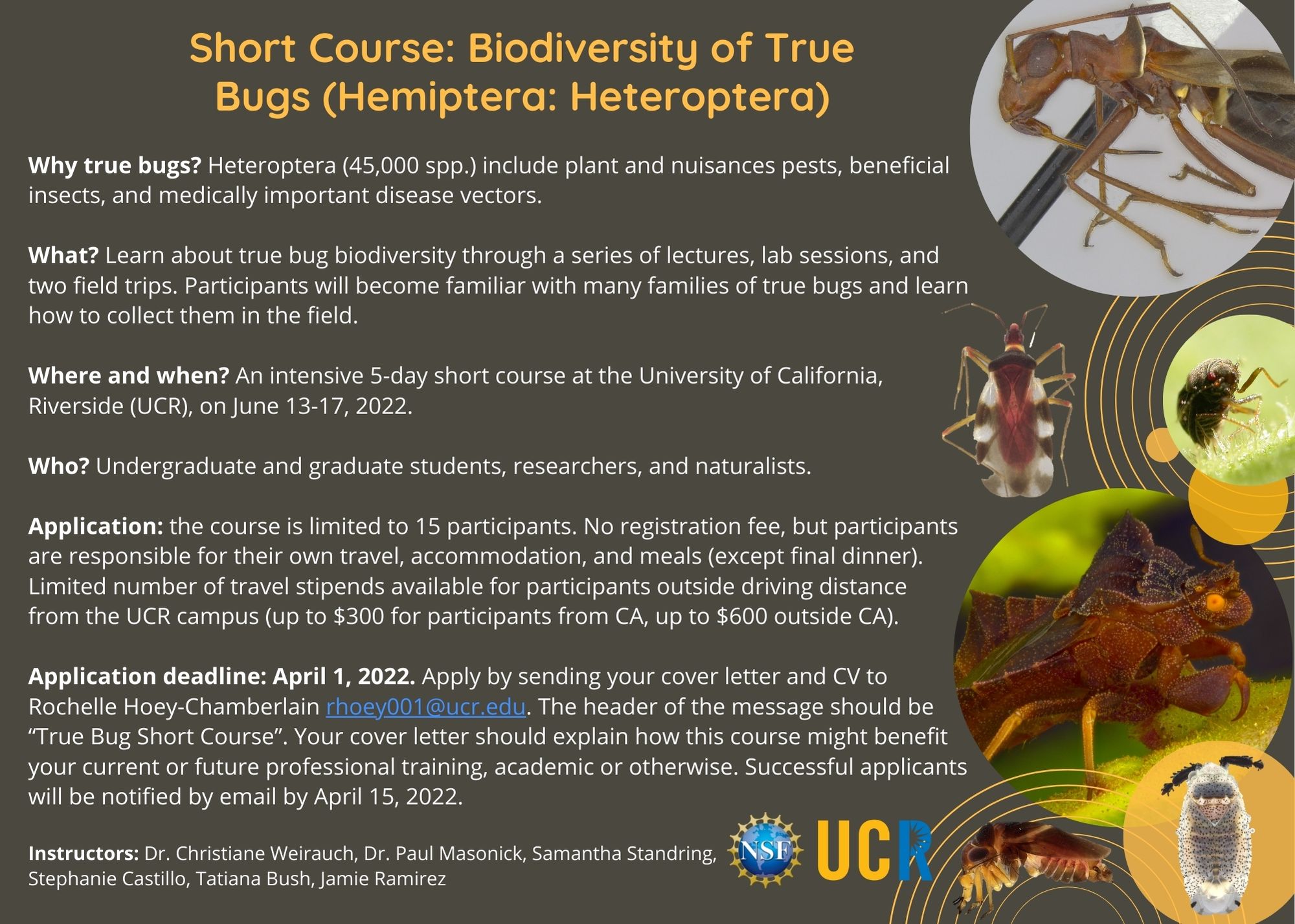 [Entm-researchstaff] Fwd: True Bug Biodiversity Short Course June 2022, Riverside, California