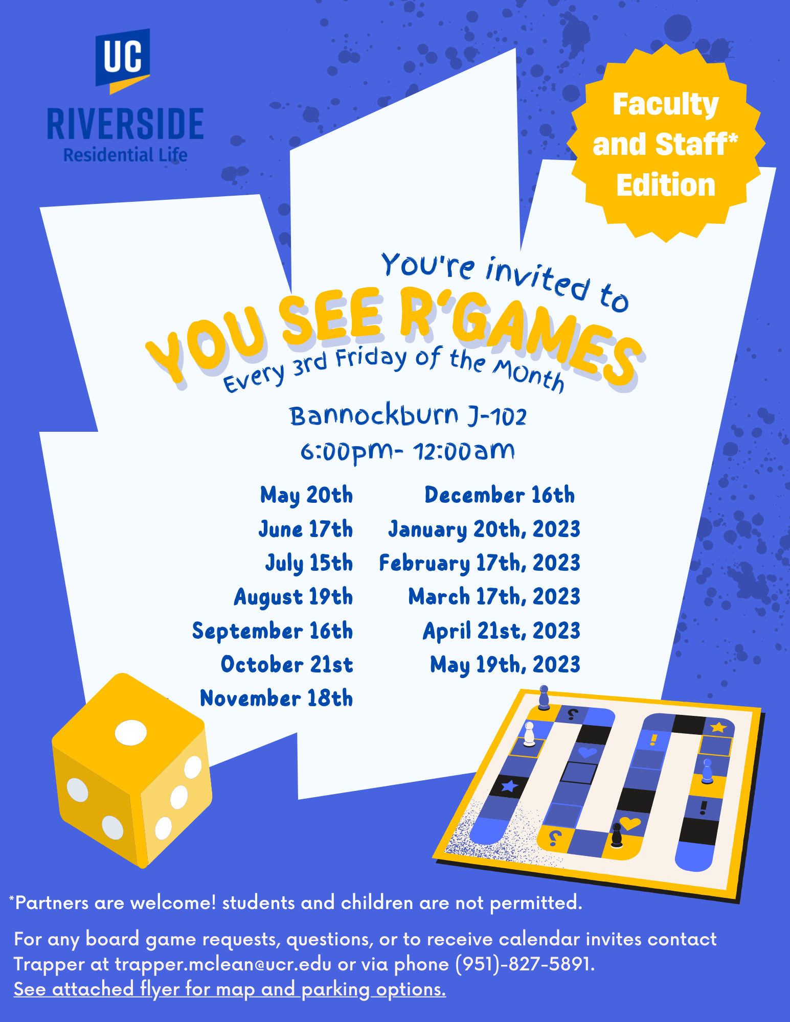 Staff board game night called You See Our Games Faculty & Staff Edition
