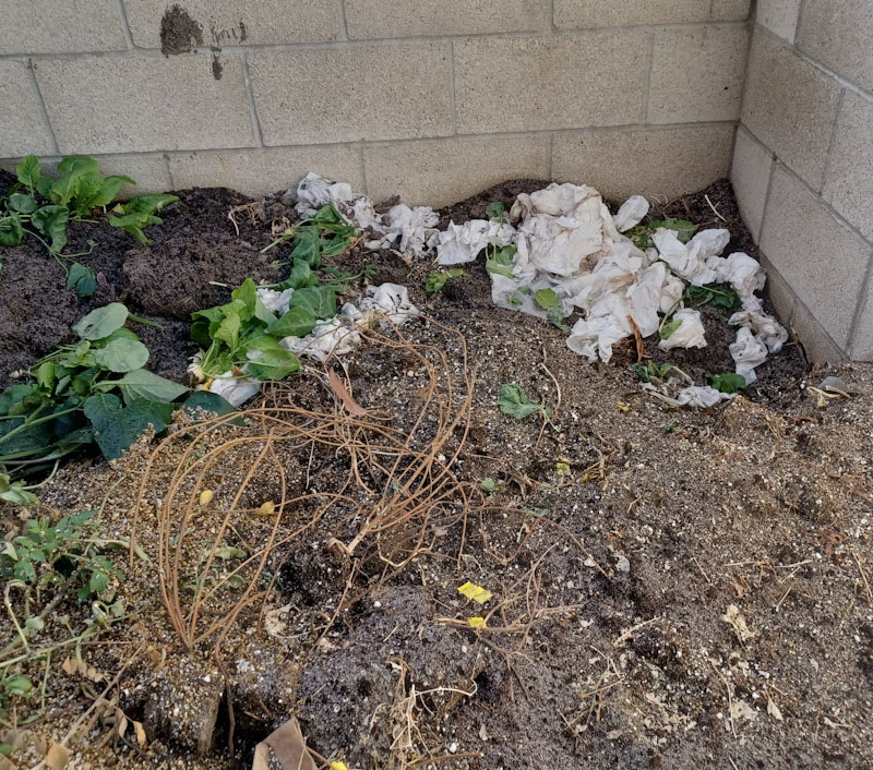If you're using the I&Q used soil dumpster, please only throw soil and plant materials in there. Please no napkins, broken post, label sticks. Use the adjacent trash bin for that.