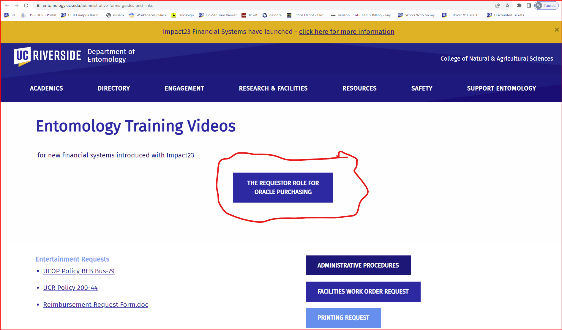 Just wanted to make sure you all were aware of the short no frills training video I did and can be found here https://entomology.ucr.edu/administrative-forms-guides-and-links just click The Requestor Role for Oracle Purchasing tile.