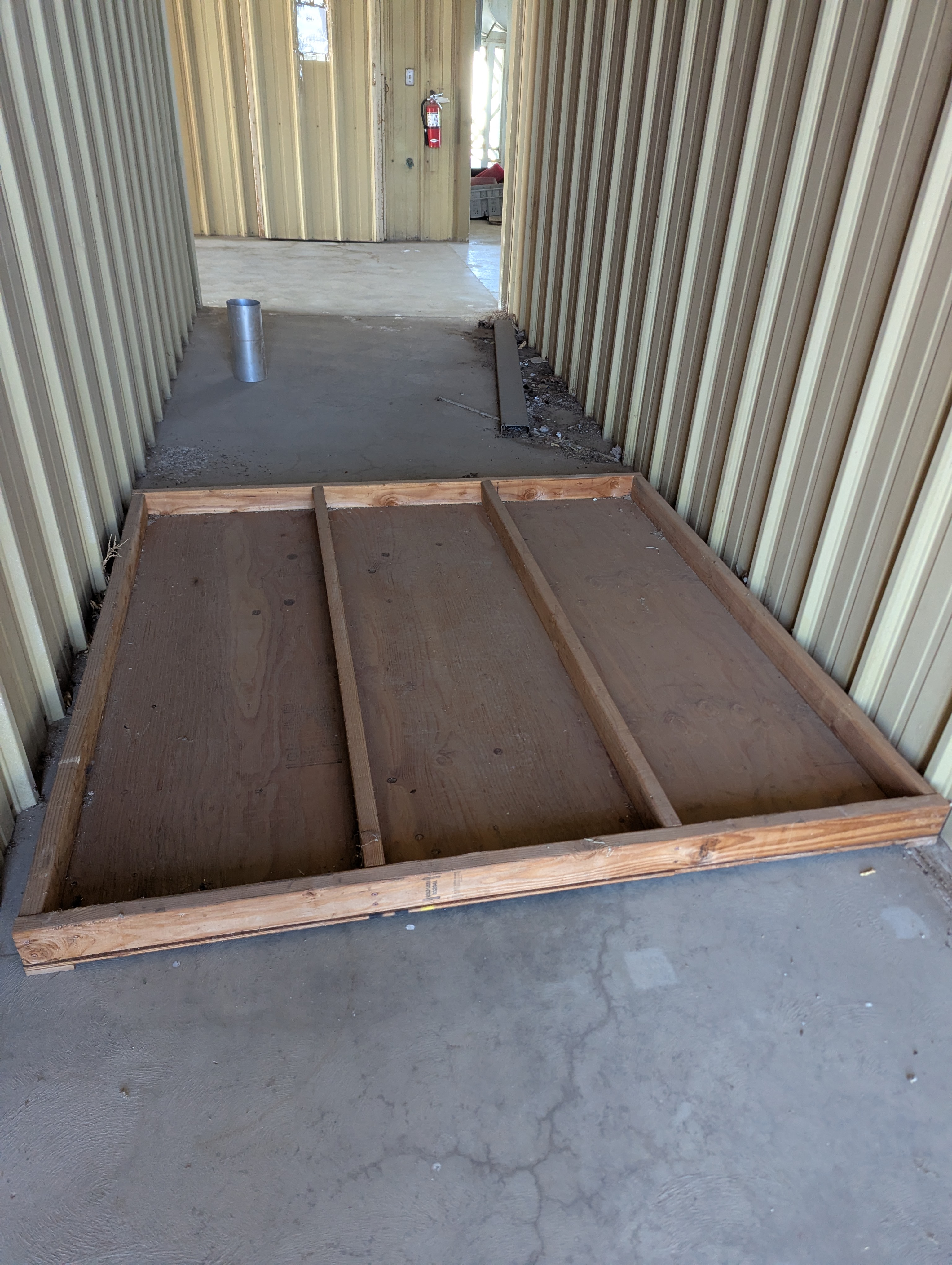 burned out storage facility. The wooden gizmos are about 8 feet long by 6
