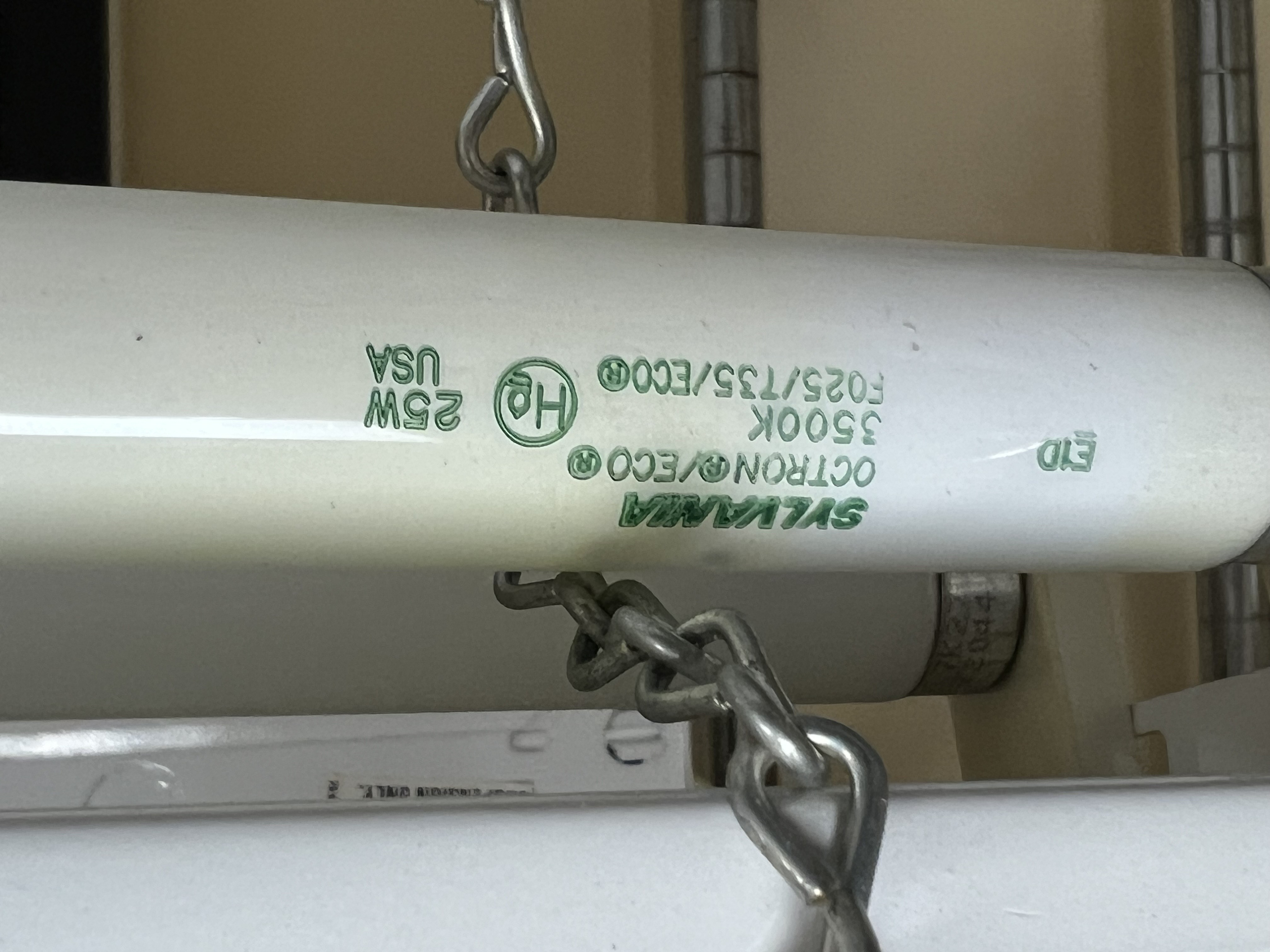for 25 W 3500K bulbs (see photo attached) but could use other T8 bulbs if